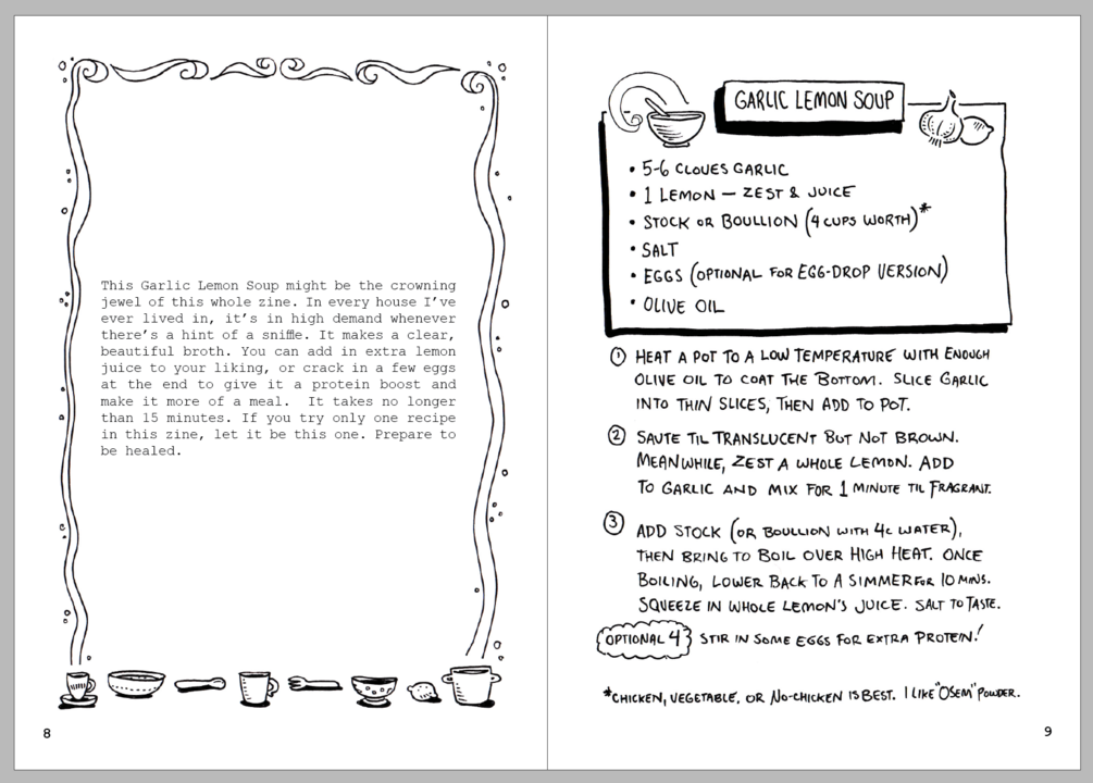 Cooking for someone who's sick is an act of care: this zine is not just a cookbook but a toolkit for connection.